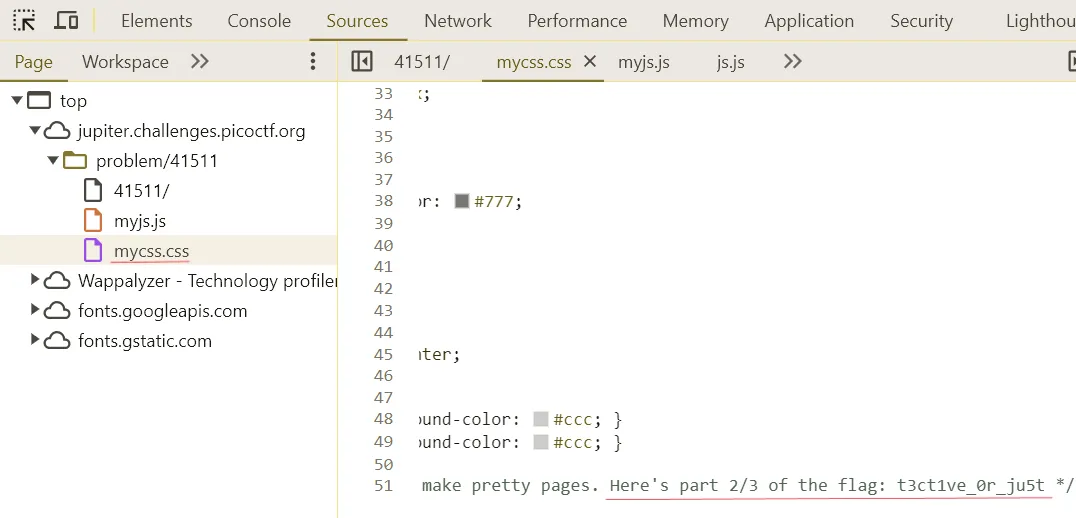 5. CSS 코드를 보면 번째 flag 값 조각 발견